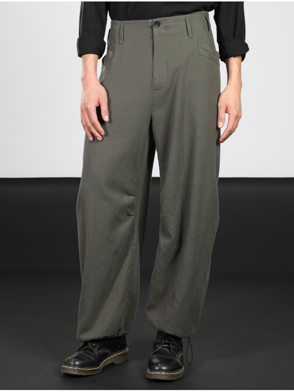 WIDE LEG PANTS WITH ELASTIC WAISTBAND IN THE BACK, IN BRUSHED COTTON TWILL, WARM AND SOFT FEELING