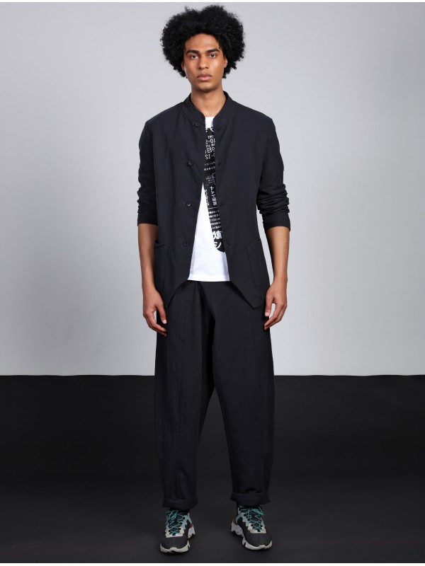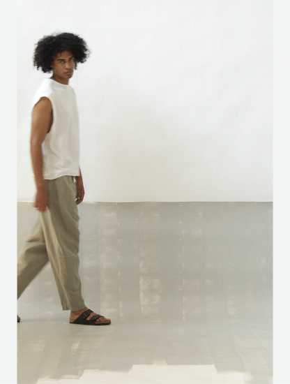 ASYMMETRICAL PANTS IN TEXTURED COTTON WITH AN AGED LOOK
