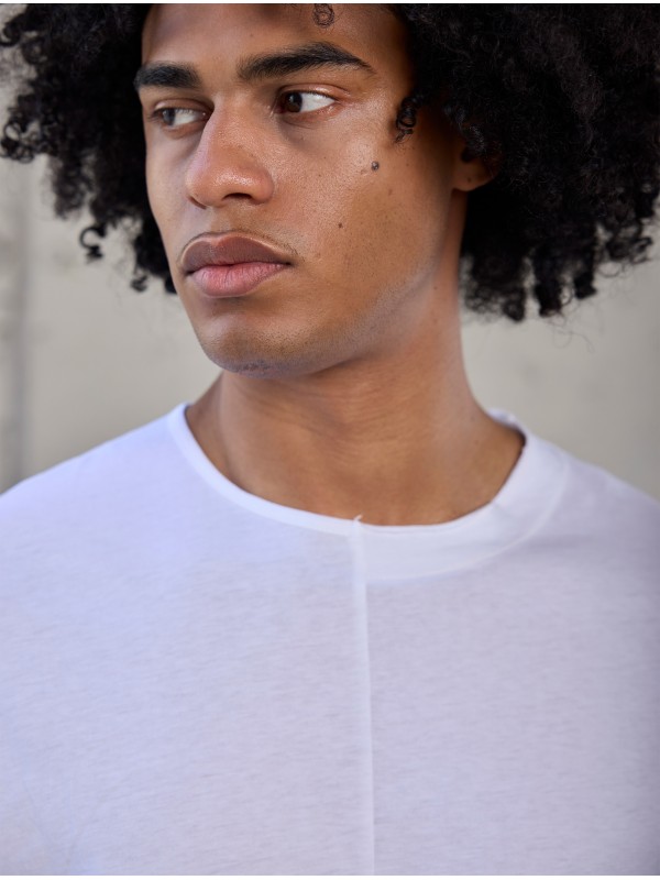THIN COTTON ASYMMETRICAL TEE WITH CUT EDGE DETAILS, LIGHTWEIGHT AND FRESH
