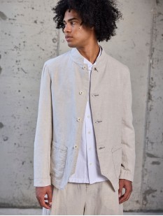 ASYMMETRICAL WAISTCOAT IN LIGHTWEIGHT LINEN-COTTON, RUSTIC LOOK