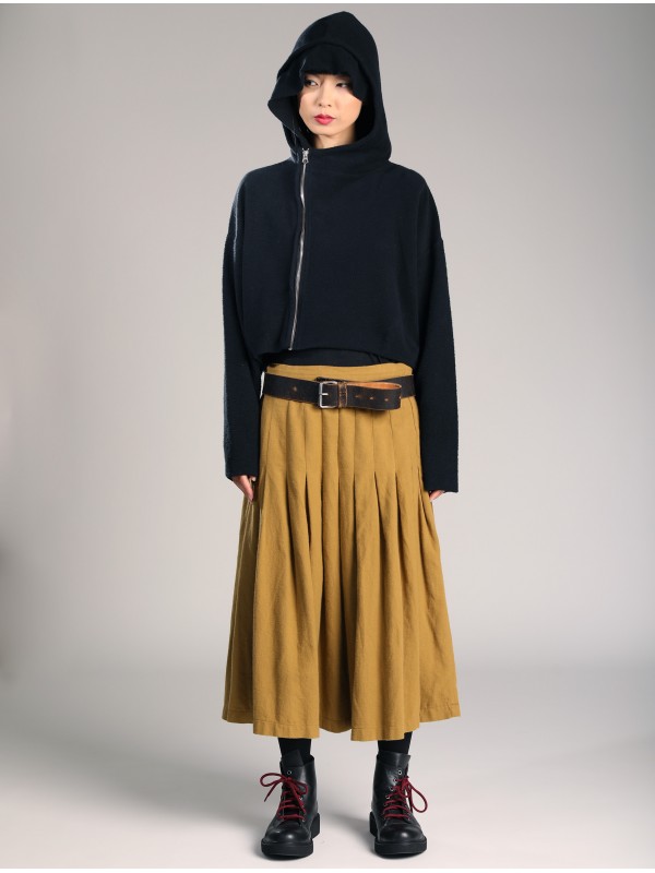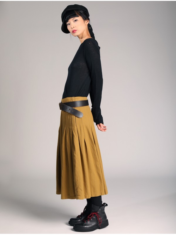 PLEATED SKIRT IN BRUSHED COTTON TWILL, WARM AND SOFT FEELING