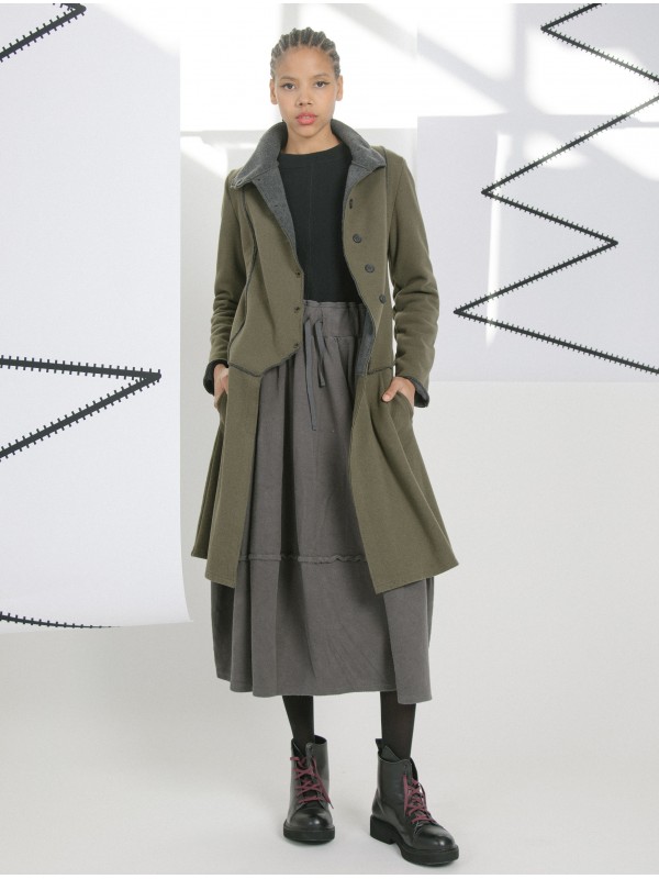 ASYMMETRICAL DUSTER IN SUPER SOFT AND WARM FLEECY COTTON, LINED WITH COLOUR CONTRAST SUPER SOFT FLEECE