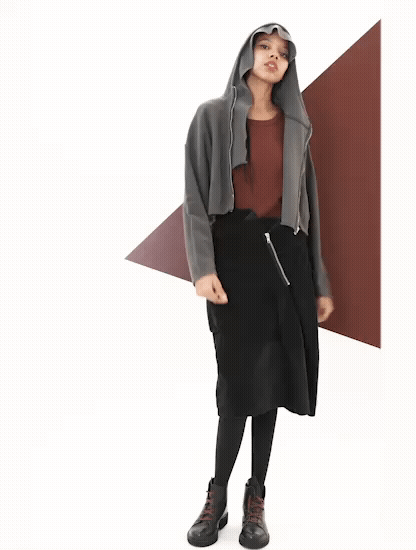 ASYMMETRIC HOODIE JACKET IN A SOFT AND WARM ORGANIC COTTON FLEECE