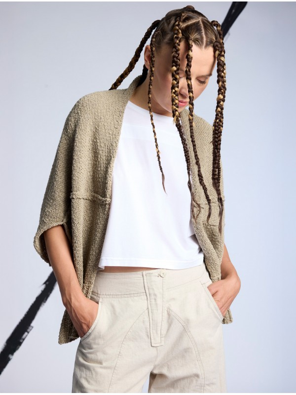 2 POSITIONS KNITTED CARDIGAN, WITH A RUSTIC LOOK