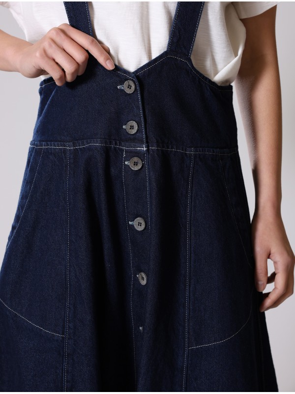 LOW CROTCH OVERALLS IN TENCEL-COTTON THICK DENIM