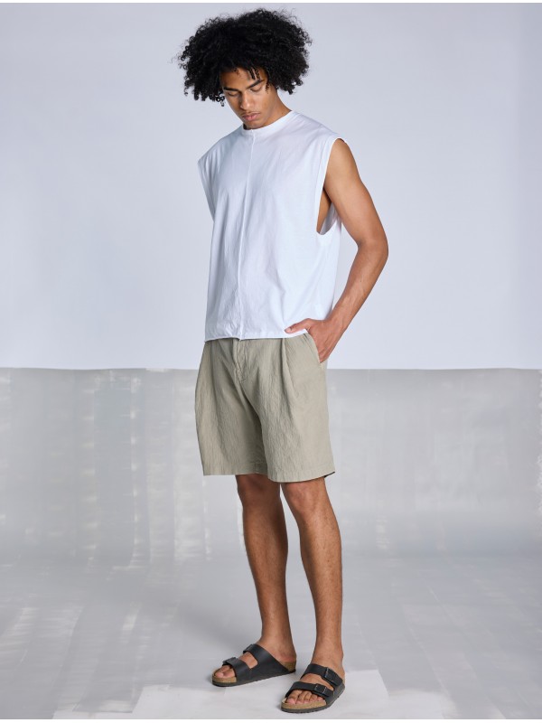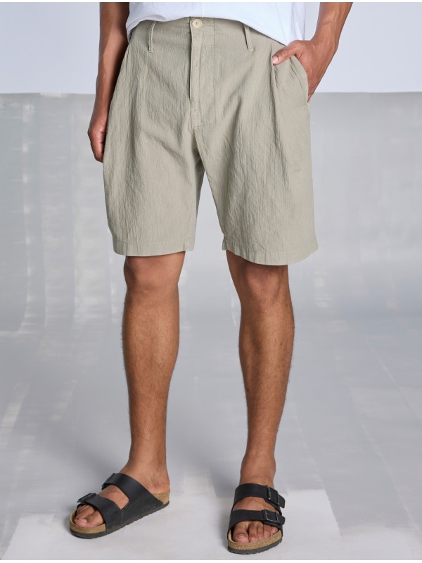 BERMUDA DE PLIEGUES EN ALGODÓN TEXTURIZADO Y DE ASPECTO LIGERAMENTE ENVEJECIDO