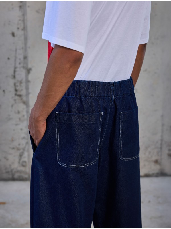 PANTALÓN SLOUCHY CON GOMA ELÁSTICA EN LA CINTURA TRASERA, EN DENIM GRUESO DE TENCEL-ALGODÓN