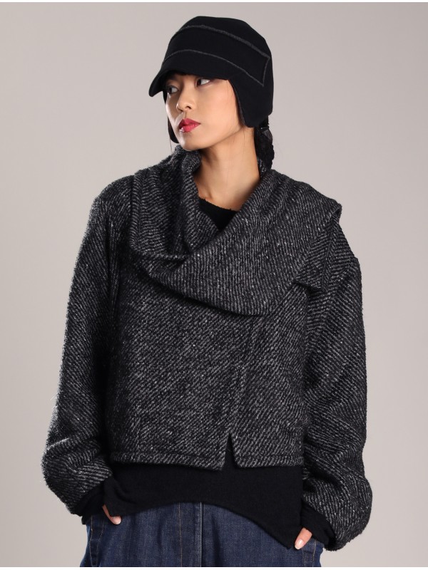 CHAQUETA DE TWEED DE LANA, CÁLIDA Y SUAVE, FORRADO EN POLAR, MANGAS FORRADAS DE SATEN