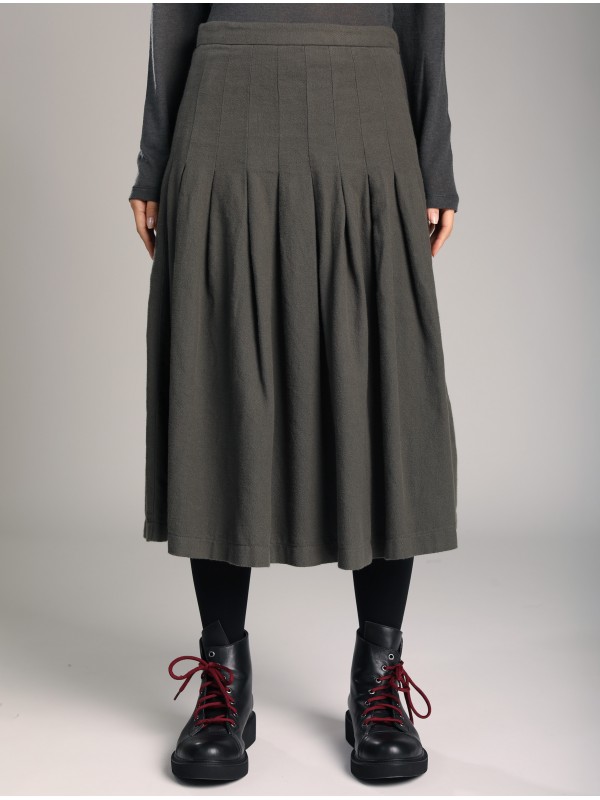 FALDA PLISADA EN SARGA DE ALGODÓN PERCHADO, DE TACTO CÁLIDO Y SUAVE