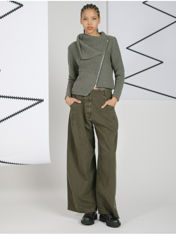 CHAQUETA ASIMÉTRICA, LANA GRUESA Y FIBRAS RECICLADAS, DE ASPECTO RÚSTICO