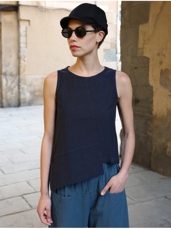 CAMISETA ASIMÉTRICA DE ALGODÓN TEXTURIZADO