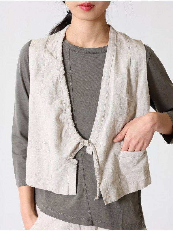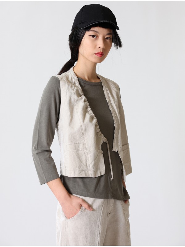 CHALECO ASIMÉTRICO DE LINO-ALGODÓN, TEJIDO LIGERO Y DE ASPECTO RÚSTICO