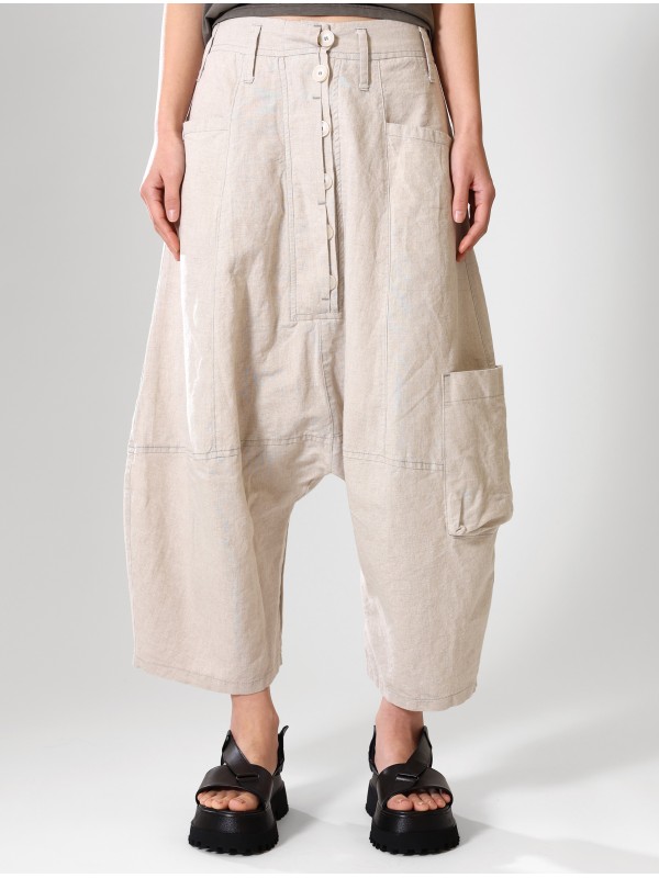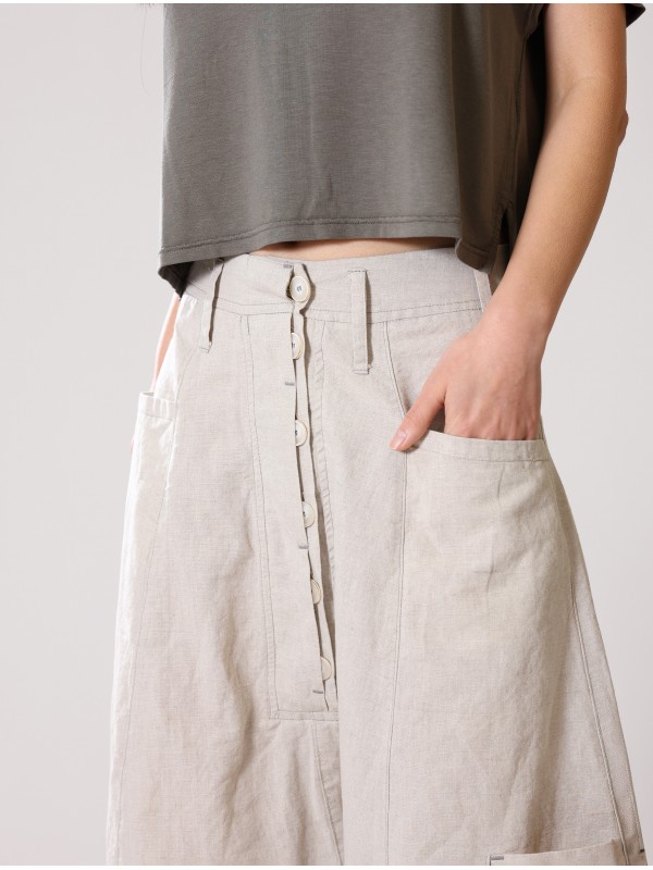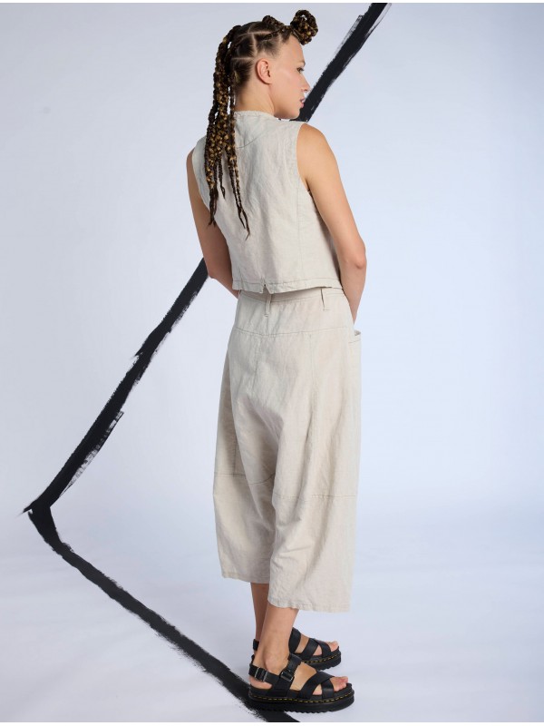 PANTALÓN DE TIRO LARGO, DE LINO-ALGODÓN, TEJIDO LIGERO Y DE ASPECTO RÚSTICO