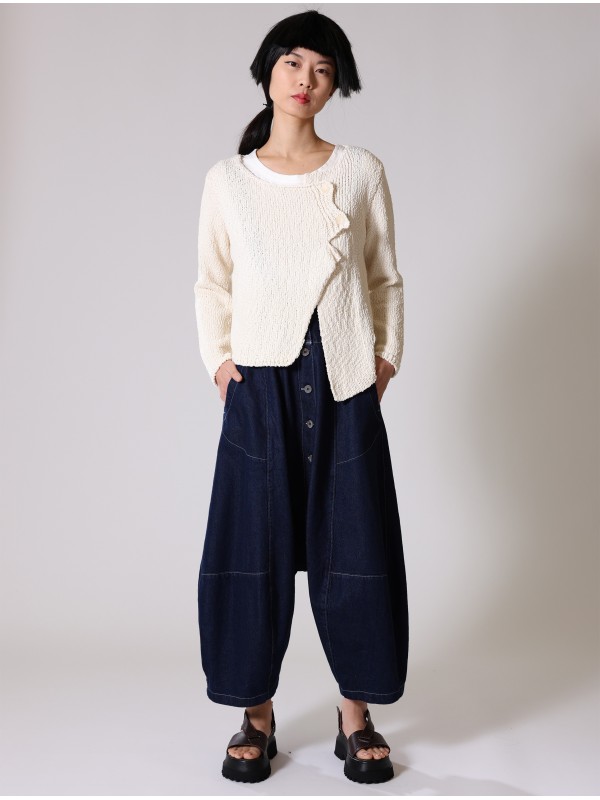 CHAQUETA ASIMÉTRICA, TRICOT TEXTURIZADO DE ASPECTO RÚSTICO