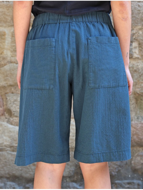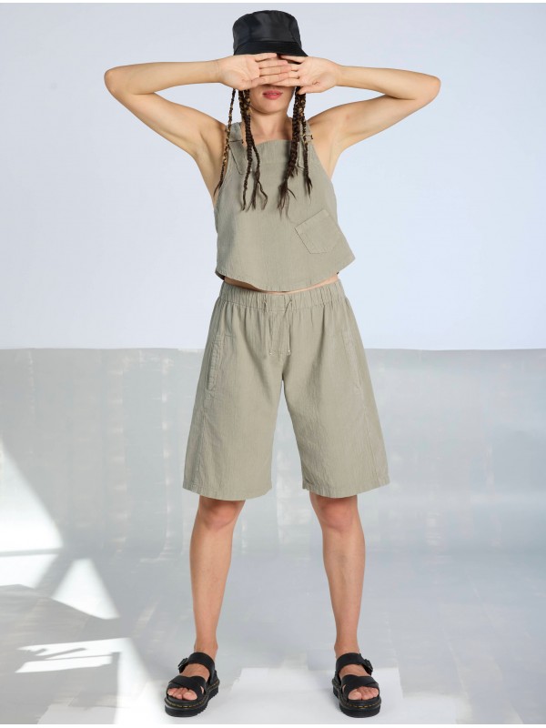 BERMUDA CON GOMA ELÁSTICA EN LA CINTURA, DE ALGODÓN TEXTURIZADO Y DE ASPECTO LIGERAMENTE ENVEJECIDO